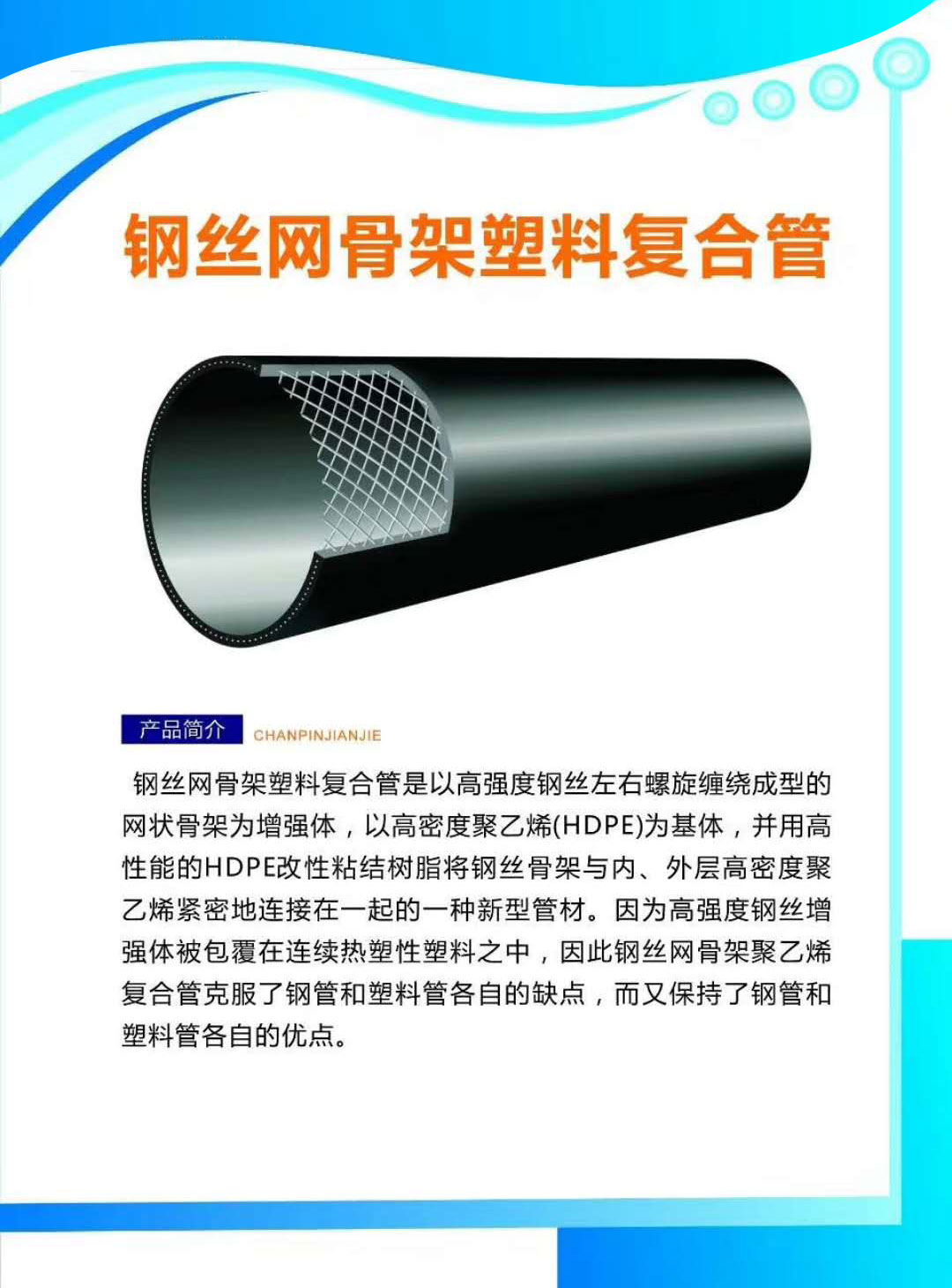 產(chǎn)品名稱:鋼絲網(wǎng)骨架塑料復(fù)合管